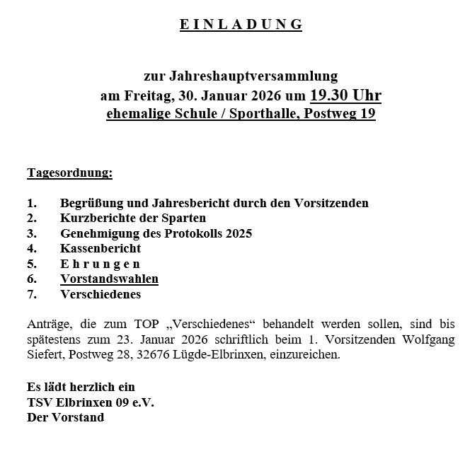 JHV TSV Elbrinxen